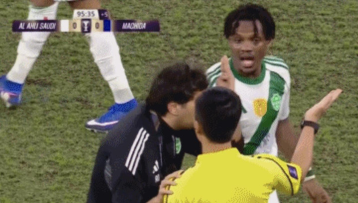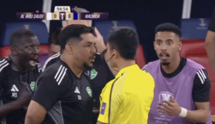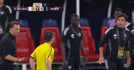不过,亚足联最终认定马宁的执法没有任何问题,并让其在亚冠决赛中担任第四官员。今日,马宁的任务是在场边协助主裁判管理双方的替补席。常规时间的最后阶段,比分依旧是0-0,吉达国民的替补球员穆罕默德-优素福似乎对判罚表示不满,嘴里一直在说着什么。