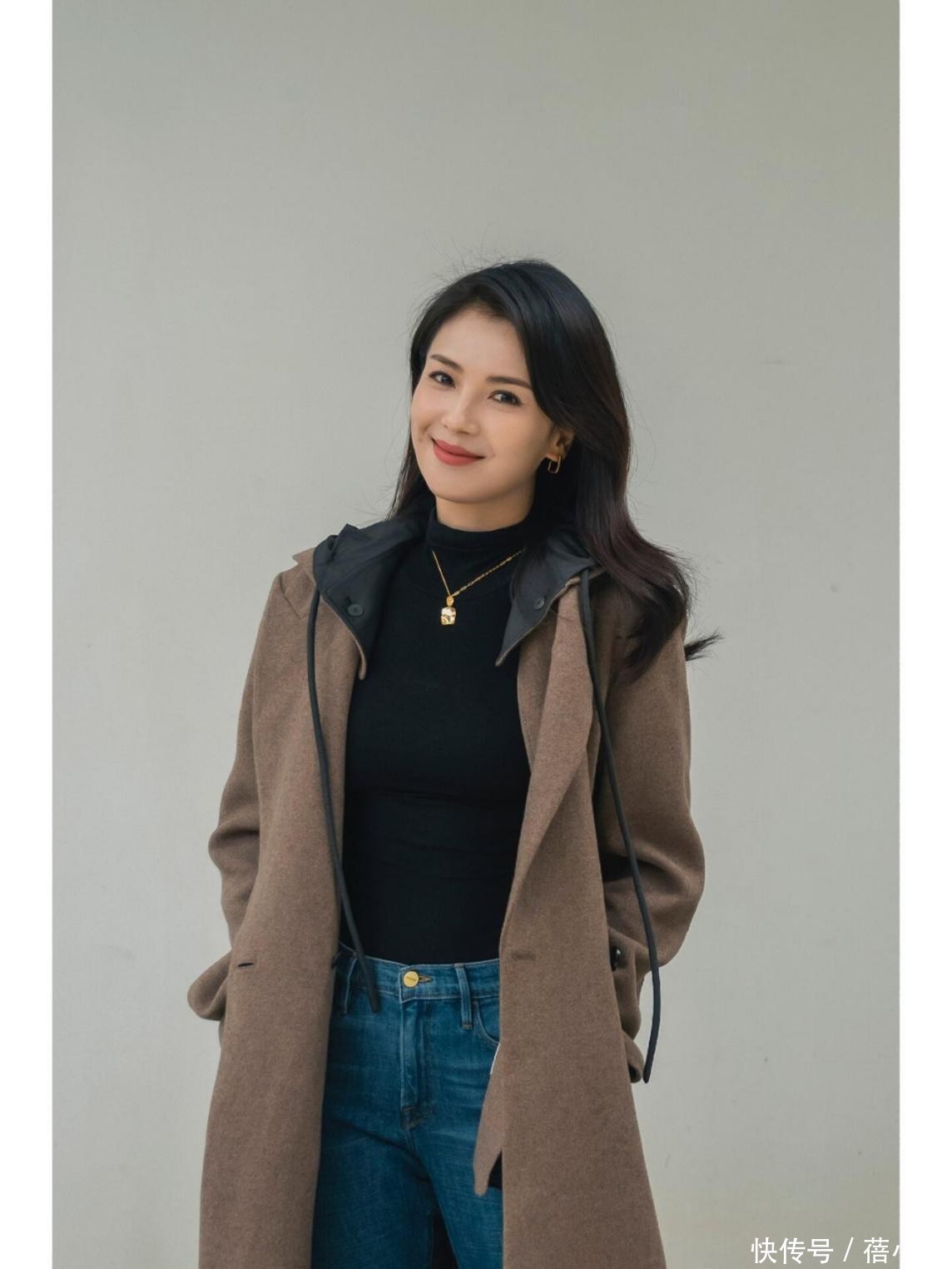 再来说说下装,呢子面料的阔腿裤未尝不可,当然牛仔裤或打底裤也可穿。